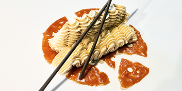 (1) Caramelize the sugar, melt the butter in it and deglaze with the cream. Add the salt and chocolate, mix and pour into a pacotizing® beaker.